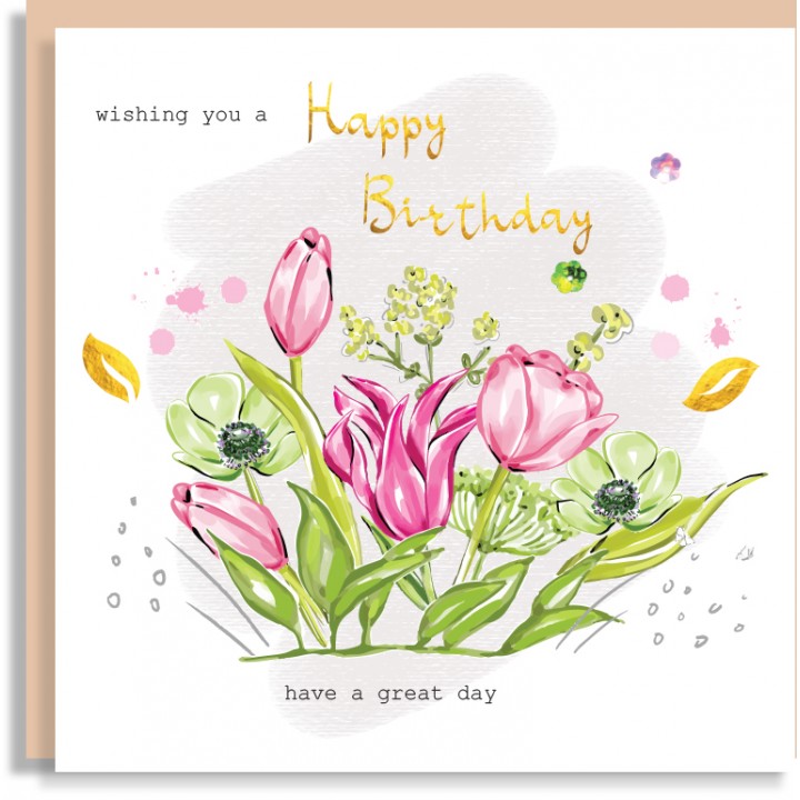 Tags: Pink Tulips, Hand-finished, greeting card, contemporary floral design, Garden