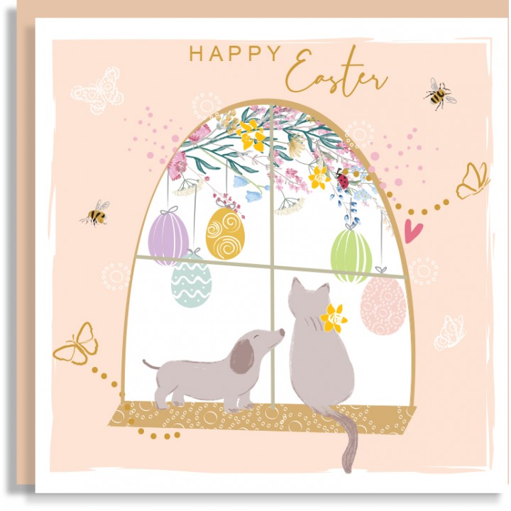 Cat Dog Easter Card