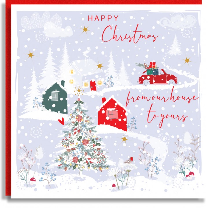 This contemporary range is hand-illustrated and features an abundance of winter foliage, berries and cute playful woodland animals and pets, covered in dusting of snow and twinkling stars. There are 24 open and relation captions in the range. The designs are printed on 145 mm square paper board, supplied with festive red envelopes and wrapped in cello bags.