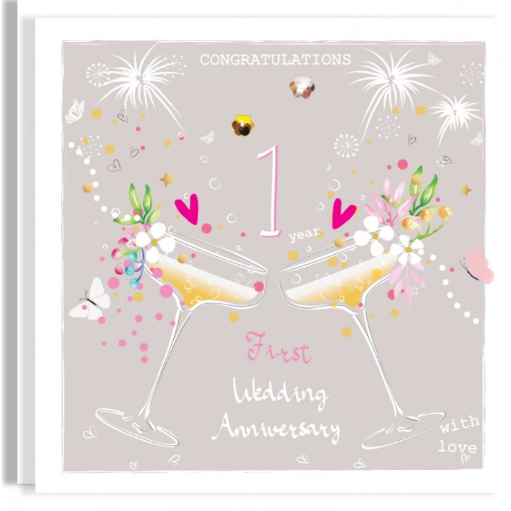 Card from fresh and modern range, fusing delicate hand-lettered typography with hand-drawn ornaments and watercolour foliage. The designs are hand-finished with floral sequins. Designed and crafted in England.